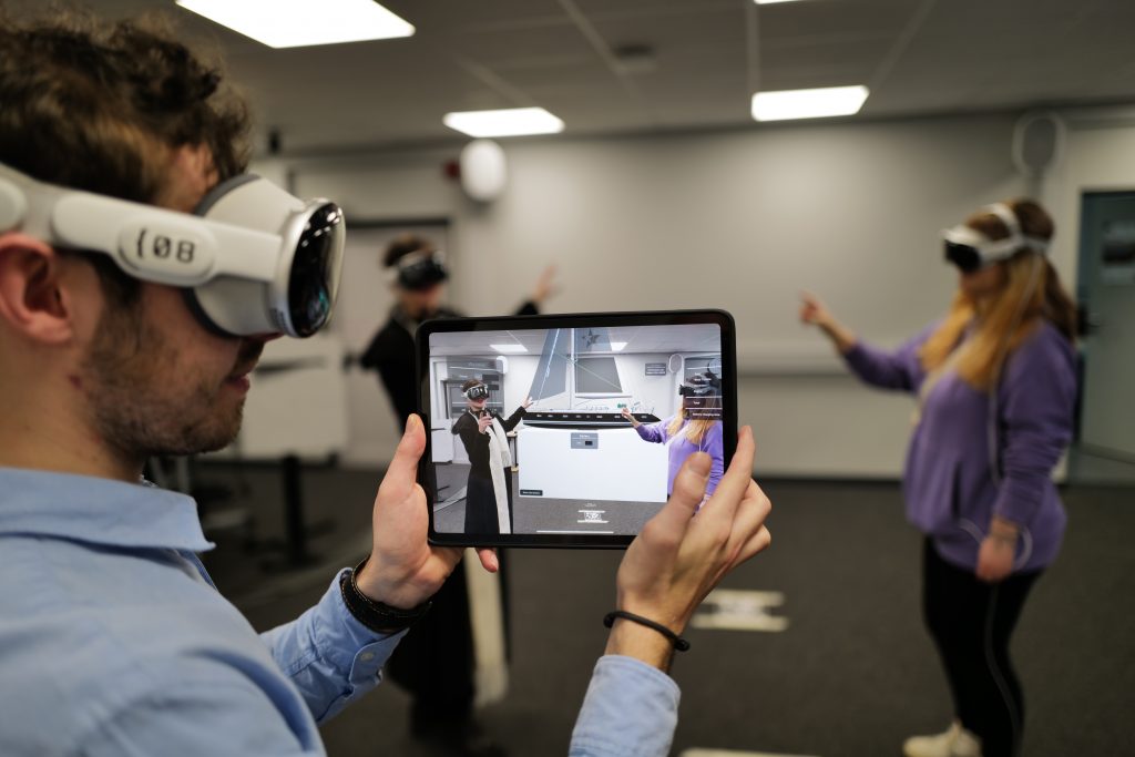 - Cross-Device Multiplayer: Powered by NSYNK’s Hyperslides framework, the session synchronizes virtual content precisely in the physical room for multiple Apple Vision Pro headsets. Passive viewers can join the session via an iPad AR app.