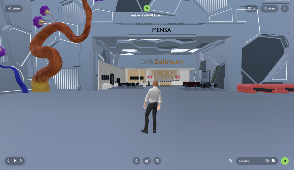 At the end we also got two partners, our student cafe and the museum of crypto arts. Also we had a call with the lead developer at MOCA and he explained us how they are using hyperfy.io.